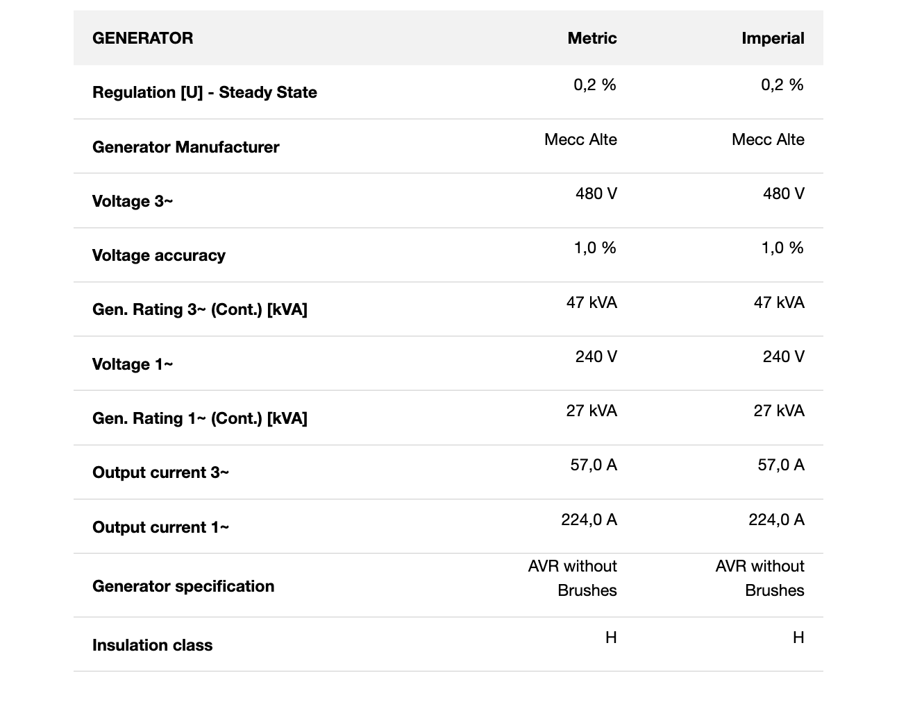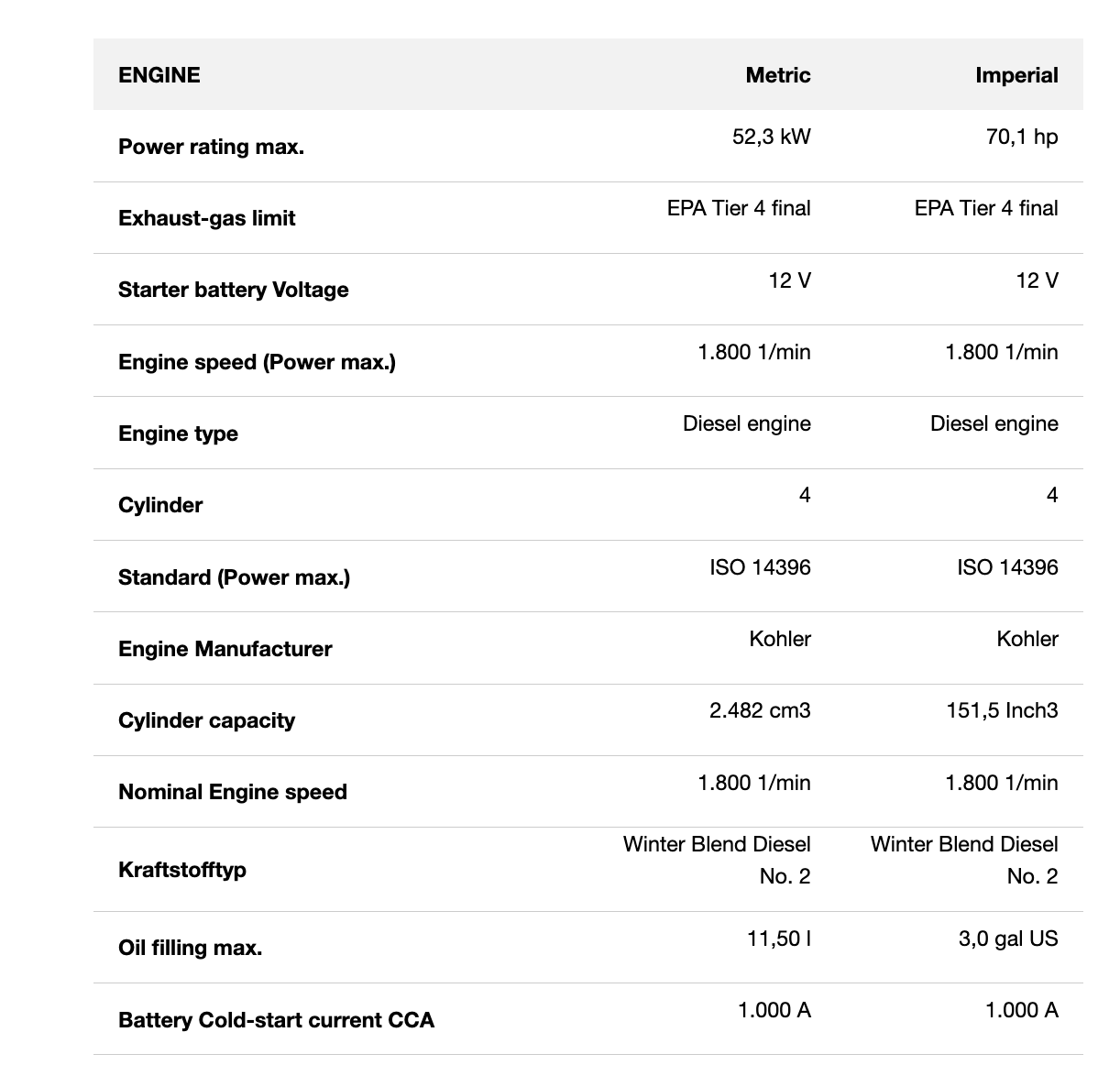 38 kW/47.6 kVA, Kohler engine